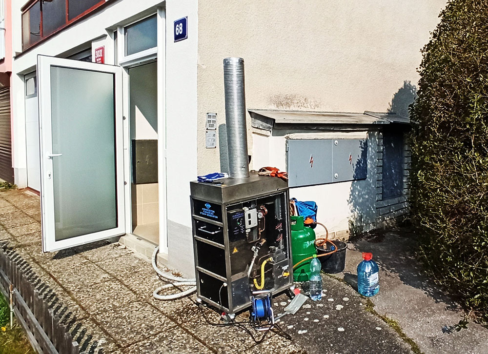 Instalace vyžaduje speciální parogenerátor na propan-butan (je nutné i zapojení do elektrické sítě, stačí běžná zásuvka). Generátor vhání tlakovou hadicí páru do vložky po celou dobu vytvrzování.